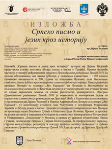 2014. године обележава се 200 година од објављивања Писменице србскога језика и Мале простонародне славеносербске пјеснарице, као и 150 година од смрти Вука Стефановића Караџића. Поред Универзитета у Минску, где је у септембру 2013. године изложба преведена на белоруски језик представљена у оквиру Међународног конгреса слависта, и Униврзитета у Бечу, где је изложба на немачком језику отворена 5. маја, намера је да се до краја године гостовањем изложбе Српско писмо и језик кроз историју овај јубилеј обележи на свим катедрама за славистику на којима се српски језик проучава као страни, а које су се 2013. године укљчиле у пројекат Преводилачке радионице Тршић. Преводилачку радионицу Тршић подржали су Центар за промоцију науке Републике Србије и Општина града Лознице.