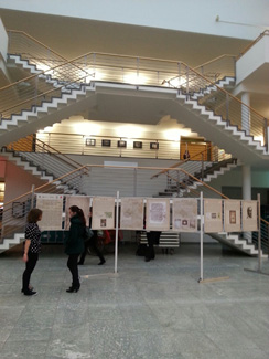 Die Ausstellung präsentierte sich zweimal in Hamburg. Zu Beginn wurde die Ausstellung am 28.10.2014 an der Universität Hamburg von Pr. Dr. Robert Hodel und Jelena Dakic, Organisatorin der Tage der serbischen Kultur in Hamburg, eröffnet. Im Rahmen des Begleitprogramms hielt Frau Dragana Grbic, die Initiatorin dieses Übersetzungsworkshops am 04.11.2014 am Institut für Slavistik einen Gastvortrag zum Thema Die Geschichte des Kyrillischen. Nach dem Vortrag führte Sarah Eblen, die letztes Jahr zusammen mit den Studentinnen von der Universität Wien, Natasa Ilic und Jennifer Resch am Übersetzungsworkshop in Tršić 2013 teilgenommen hatte. durch die Ausstellung.