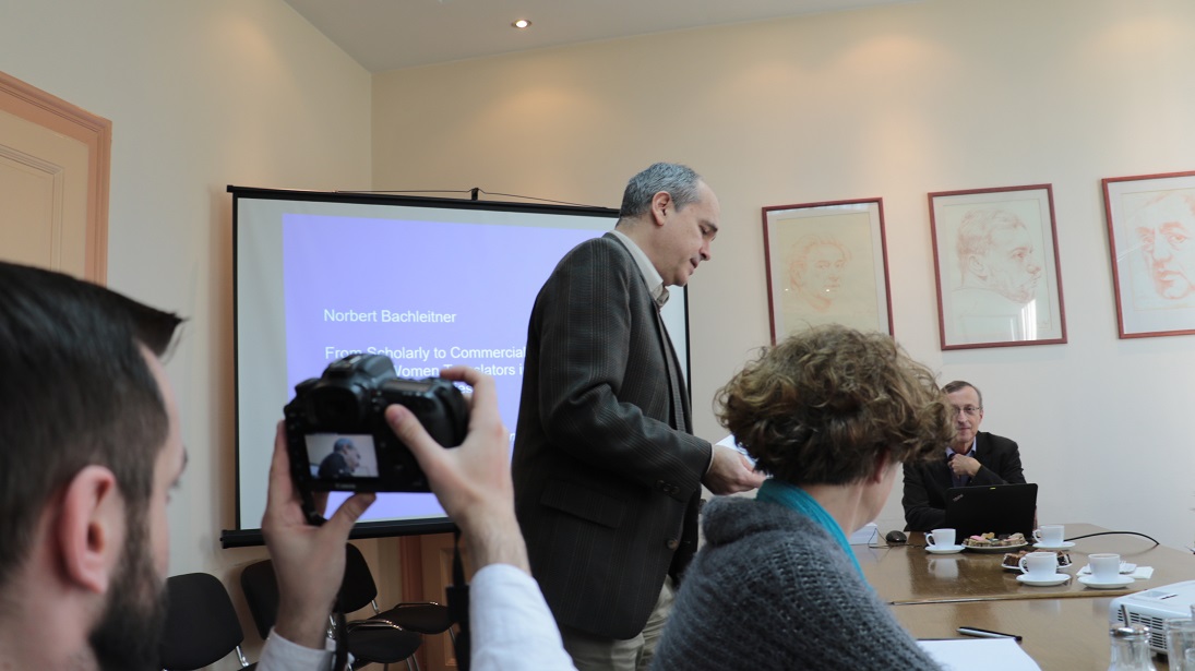 У библиотеци Института за књижевност и уметност, у среду 14. децембра 2016. др Норберт Бахлајтнер (Norbert Bachleitner) одржао је предавање под насловом "From Scholarly to Commercial Writing: German Women Translators in the Age of 'Translation Factories'". Др Норберт Бахлајтнер редовни је професор Бечког Универзитета, руководилац Катедре за упоредну науку о књижевности на Факултету филолошких и културних наука. Истражује и предаје историју рецепције (енглеска, француска и руска књижевност на немачком језичком простору), историју књижевног превођења, социјалну историју књижевности и историју књиге (нарочито области књижевне цензуре и књижевности у периодици), као и дигиталну књижевност. Један је од главних уредника часописа Internationales Archiv für Sozialgeschichte der deutschen Literatur и научних едиција Studien und Texte zur Sozialgeschichte der Literatur, Internationale Forschungen zur Allgemeinen und Vergleichenden Literaturwissenschaft, Wiener Beiträge zu Komparatistik und Romanistik и Wechselwirkungen. Члан је бројних других уредништава међународних часописа и научних едиција, као и управног одбора Друштва за проучавање историје књиге у Аустрији (Gesellschaft für Buchforschung in Österreich) и европског научног удружења Academia Europea.