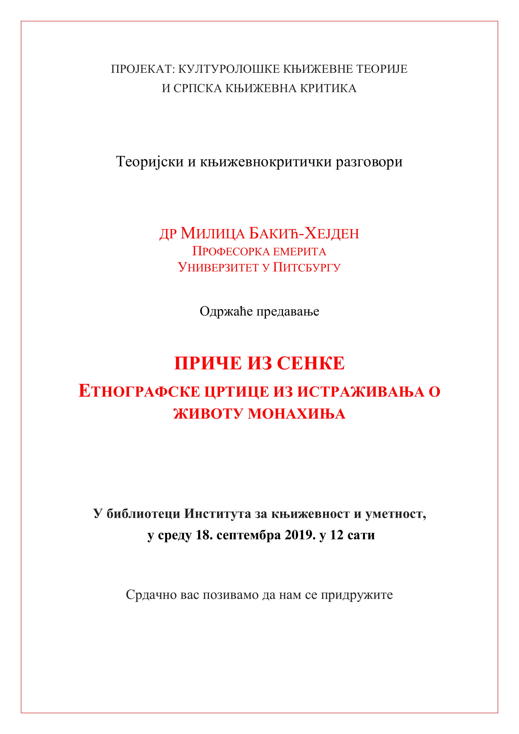 И ове године у раду Фолклористичког кампа „Вук Караџић“ учествовали су сарадници Института за књижевност и уметност (пројекат Српско усмено стваралаштво у интеркултурном коду) и сарадници Музиколошког института САНУ. Реч је о једној од едукативних радионица које се по други пут реализују као део активности Образовно-културног центра „Вук Караџић“ у Тршићу, под покровитељством Министарства просвете, науке и технолошког развоја РС. За полазнике, средњошколце из различитих крајева Србије и Републике Српске, осмишљен је иновативан образовни програм, базиран на искуствима интердисциплинарних истраживања у области хуманистичких наука: народне књижевности, етнолингвистике, етнологије, етномузикологије, етнокореологије, односно – инклузивно оријентисане фолклористике. Рад је био организован кроз спој теоријских предавања, радионица (које су подразумевале активности везане за индивидуалне и тимске пројекте полазника) и теоријске и практичне обуке за теренско-истраживачку праксу. Посебан вид знања и вештина био је понуђен кроз факултативне едукативно-креативне радионице за извођење народне музике.