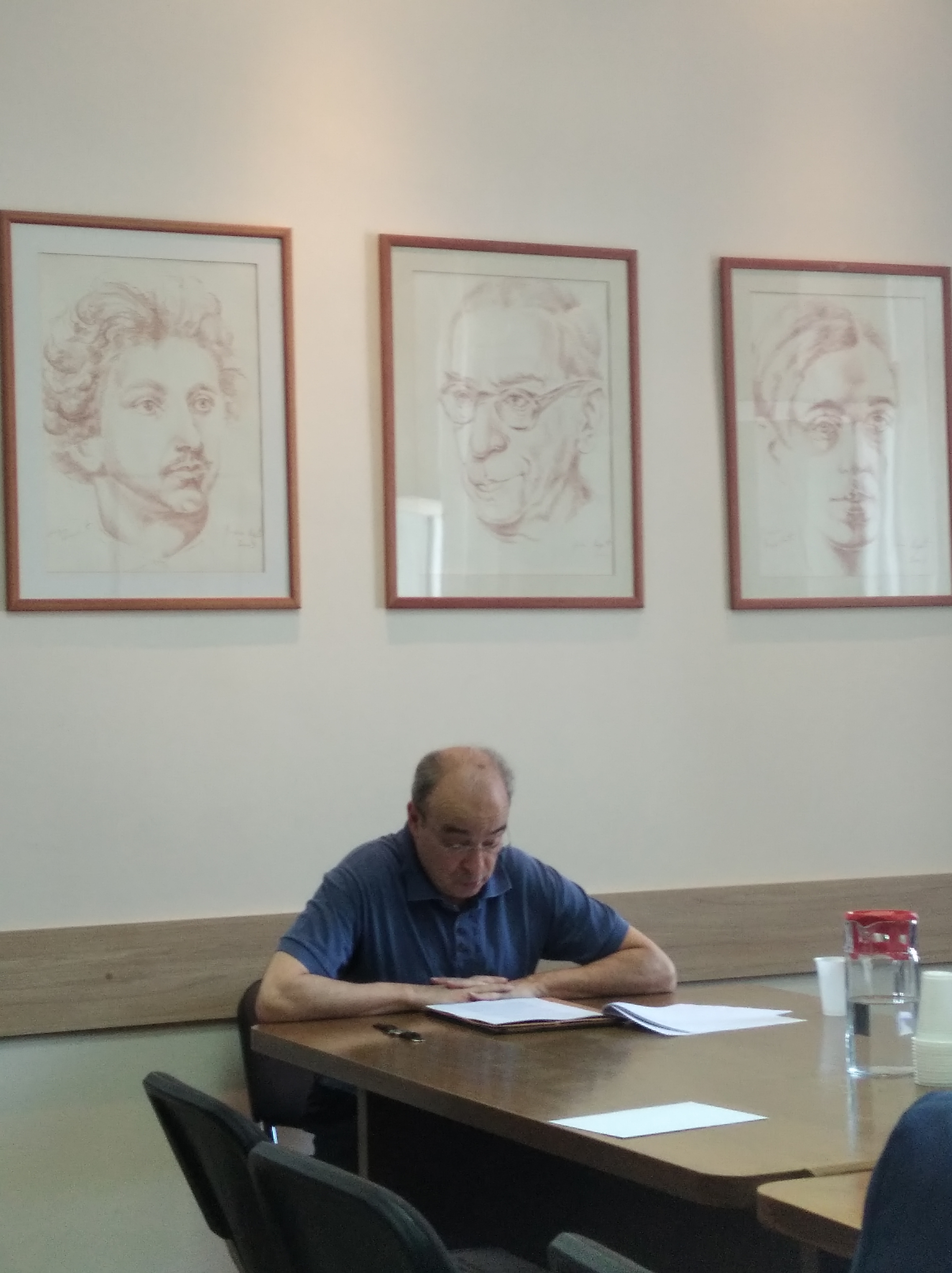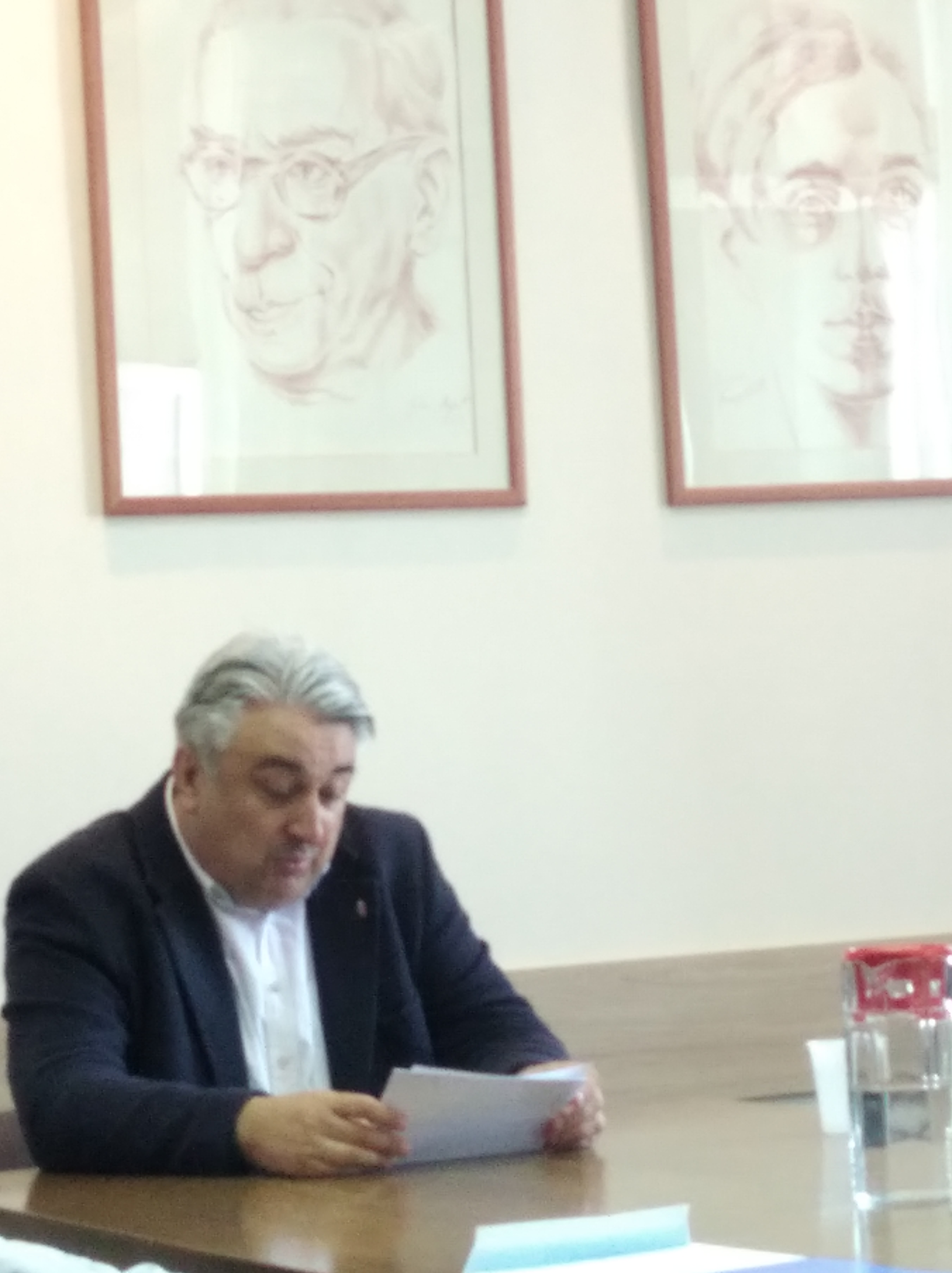 Уводно излагање на тему „Смисао, контекст и књижевно тумачење“ изнео је проф. др Леон Којен, теоријски образлажући важност познавања контекста у тумачењу књижевног текста, те показујући какве су импликације тог схватања за разумевање песама Милана Ракића и начина на који је песник био тумачен и вреднован у критици и историји књижевности.