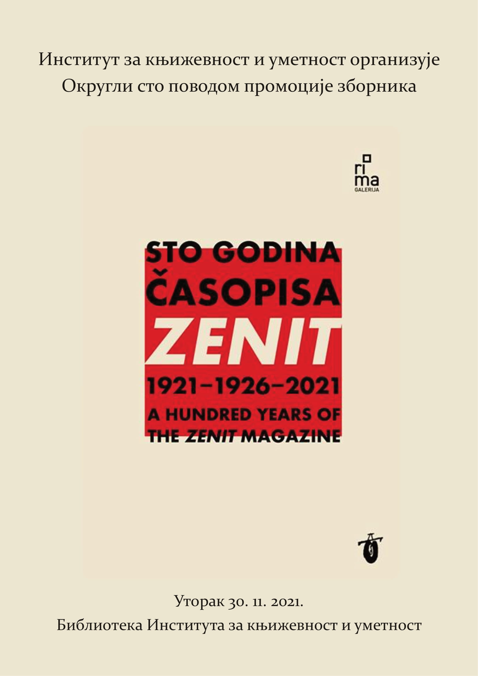 Поводом објављивања зборника Сто година часописа Зенит 1921 - 1926 - 2021 Институт за књижевност и уметност организује округли сто. Зборник су уредили др Ирина Суботић и др Бојан Јовић, а објављен је у сарадњи Института за књижевност и уметност и Галерије РИМА. У разговору учествују: Весна Матовић, Бојан Јовић, Станислава Бараћ, Жарка Свирчев, Зорана Симић и Јован Букумира. Округли сто ће се одржати 30. 11. 2021. у Библиотеци ИКУМ-а са почетком у 12 часова. Округли сто је посвећен недавно преминулом колеги Александру Петрову.
