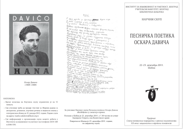 У организацији Институтa за књижевност и уметност, Београд, Учитељскoг факултетa Универзитета у Београду, и Библиотеке шабачке, 22–23. децембра 2011. у Шапцу је одржан научни скуп Песничка поетика Оскара Давича. Скуп је организован као део активности на пројекту Смена поетичких парадигми у српској књижевности ХХ века: национални и европски контекст.